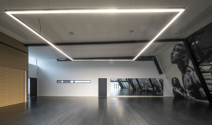 -Revêtement de sol sportif dans la salle de boxe de type GERFLOR Taraflex Evolution +